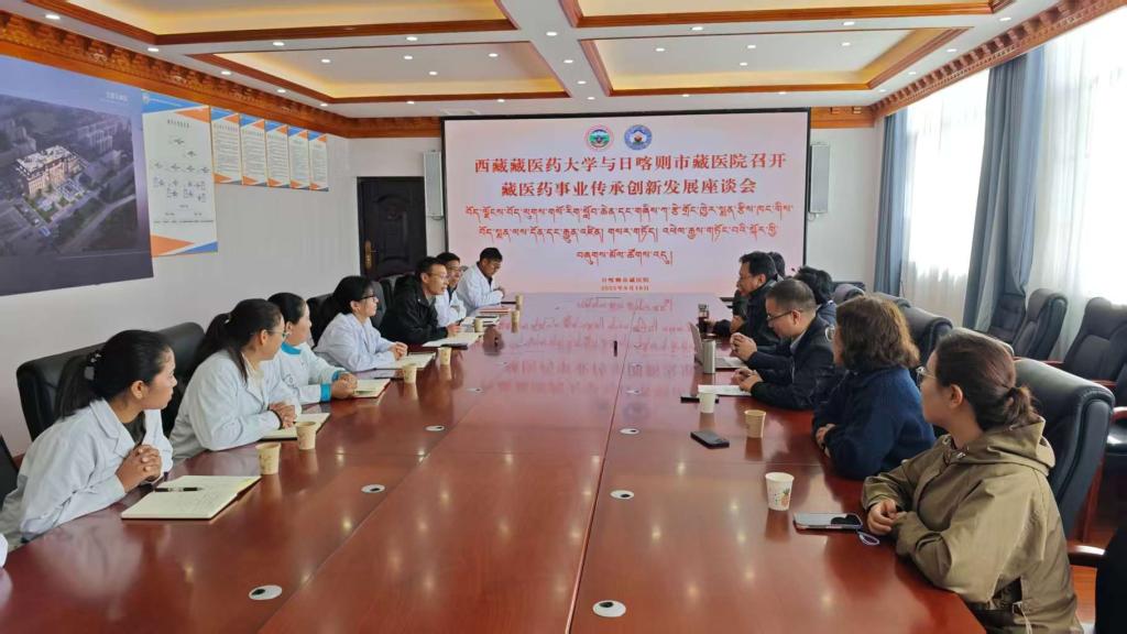 系列活动第三站:“藏医药文化边疆行”-走进日喀则市藏医院。9月18日,到达日喀则市藏医院开展调研交流活动。双方围绕藏医药事业的传承与发展、人才培养、技术发展以及存在问题等方面展开深入讨论,进一步交流了医教融合之路,为双方加强合作进一步奠定了基础。