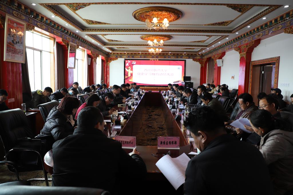 3月16日下午,我校召开党史学习教育动员大会。校党委书记、副校长鞠明兵作动员讲话,校党委副书记、校长米玛主持。学校其他在家的领导出席,学校县处级干部、各党支部书记参加。