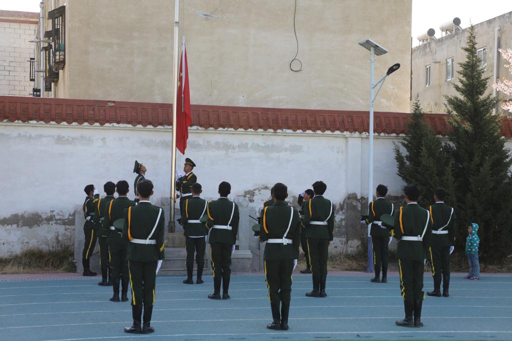我校举行纪念西藏百万农奴解放62周年“升国旗 唱国歌”活动