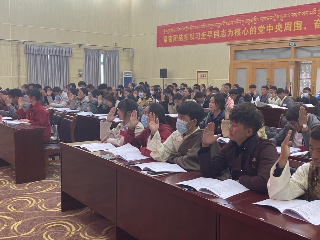 最后,次仁德吉对代表们提出要求,希望出席本次“两代会”的101位正式代表,能切实肩负起全校青年学生的重托,以高度负责任的精神,认真履行代表职责,建言献策,集思广益。把本次大会开成一次求真务实、开拓创新的大会;开成一次统一思想、凝聚力量的大会;开成一次团结带领全校共青团和青年学生满怀信心、奋勇前进的大会。