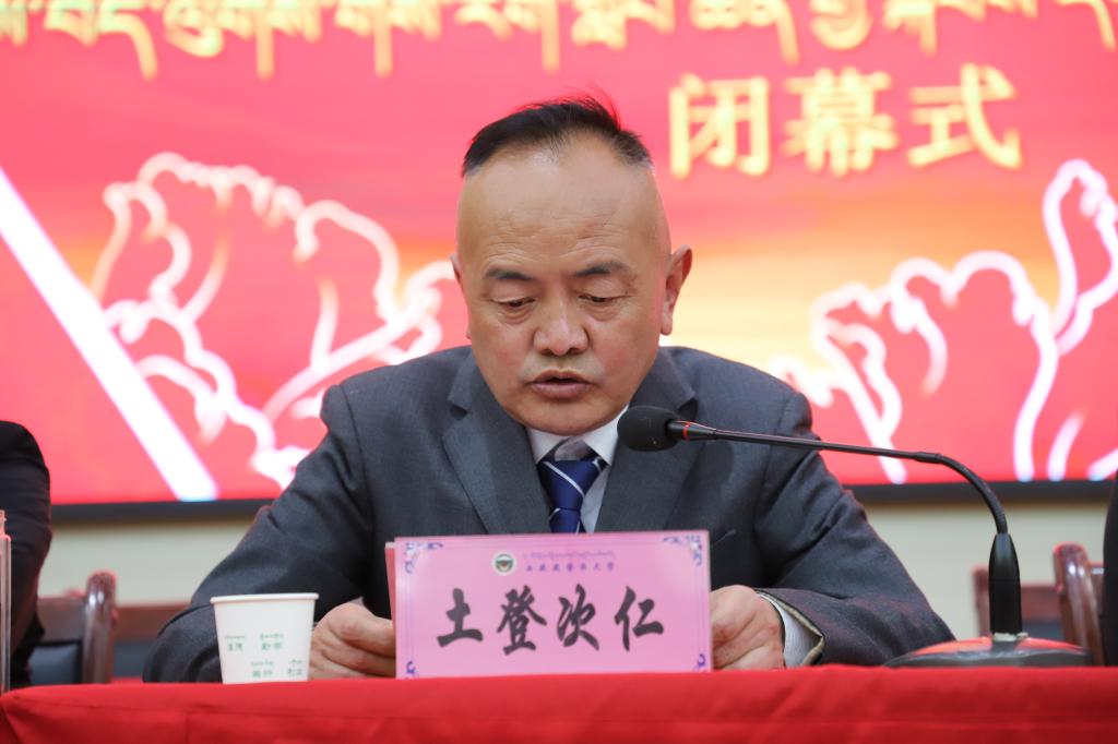最后,土登次仁处长致闭幕词。他指出,此次“两代会”认真回顾总结了几年来我校共青团及学生会工作的新成绩、新进展和新经验,凝练了团学组织今后几年的主要任务;进一步明晰了发展方向和工作思路,并顺利选举产生了新一届团委委员会和学生会主席团。会议气氛庄重、热烈,与会团学青年深受教育和鼓舞,思想更加统一,目标更加明确,热情更加高涨,这一切都为新一届共青团和学生会工作的顺利开展、再创辉煌奠定了良好的基础。他强调,我校各级团学组织和团学干部、团学代表一定要清醒地意识到自己的社会职责和历史重任,深入学习贯彻习近平新时代中国特色社会主义思想和中央、自治区团委、学校党委工作会议精神,用满满的正能量充盈自己,用青春的梦想之火激励自己,勇作社会进步和学校发展的骨干与表率。希望新一届团委委员会和学生会主席团倍加珍惜学校党委、全校团员青年和广大学生的信赖和期望,积极传达大会精神,认真贯彻大会决议,带领全校团员青年和广大学生努力完成大会提出的各项任务,以本次大会的召开为新的起点,戒骄戒躁,勤奋学习,不断追求卓越,实现全面发展,成就卓越人生。坚信,学校各级团学组织将以这次大会的召开为新的起点,紧紧围绕学校中心工作,团结带领全校广大团学青年,与时俱进、开拓创新、奋发有为,在加快迈向一流藏医药大学步伐、全面开创学校内涵建设跨越式发展的征程中再创辉煌!