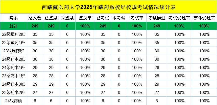 本次考试面向全体藏药系249名学生,实现参与率、通过率双100%,展现出学生积极学习的态度。考试采用线上答题,以选择题为主,围绕教学、行为、宿舍管理及安全教育等新修订校规,结合实际案例,全面考查学生对制度的理解应用能力。