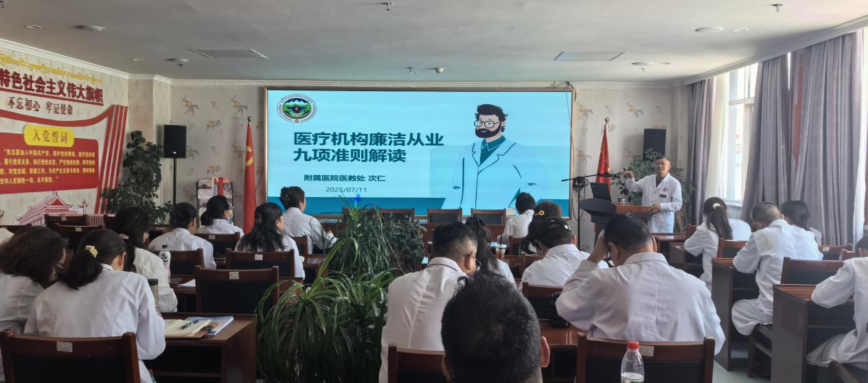 培训中,次仁立足藏医学"大医精诚"的传统医德理念,紧密结合《医疗机构工作人员廉洁从业九项准则》(国卫医发〔2021〕37号)文件要求,通过理论解读与典型案例剖析,系统阐述了新时代医疗卫生行业廉洁自律的核心要义和实践要求,引导职工深刻认识廉洁从业的重要性。