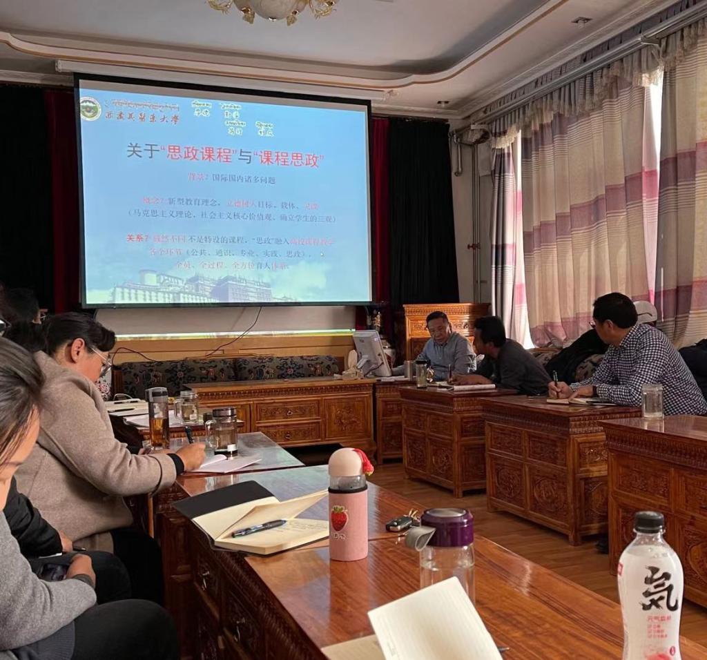 首先,普琼次仁传达了课程思政建设的具体要求和意义,同时表明课程思政建设要坚持立德树人,发挥教师队伍“主力军”,必须结合我校的办学定位和专业特色,发挥好专业优势。