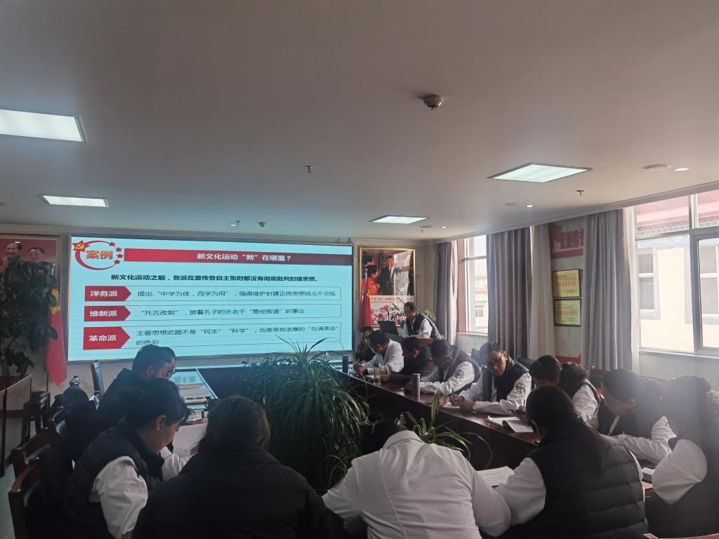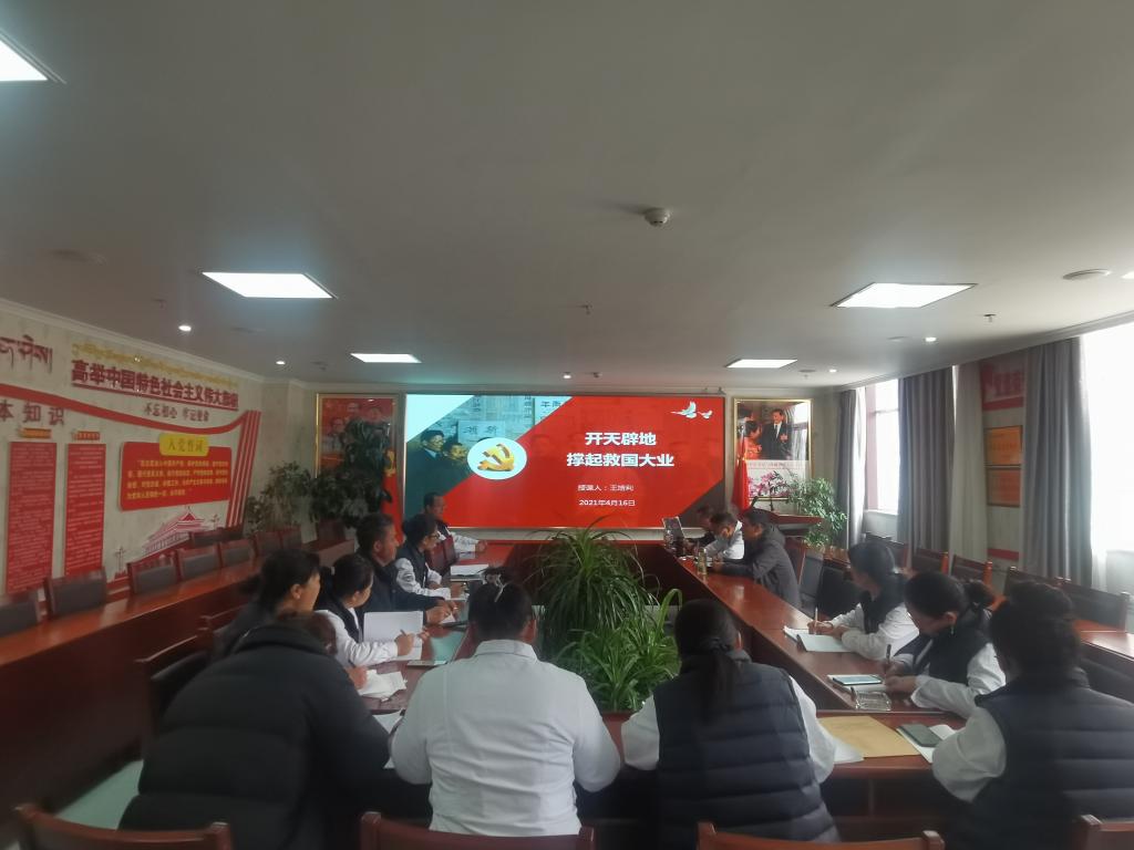 根据附属医院党总支党史学习教育工作安排,于4月16日下午附属医院第一支部书记王培利同志在党员活动中心给全院党员和含预备党员讲专题党课,附属医院党总支书记 副院长王积瑞、副书记院长多杰仁青、副院长白玛罗布以及全体党员和预备党员参加党课活动。