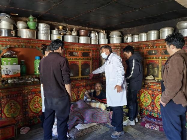 活动期间,专家不顾高度紧张,不辞辛苦劳累,还针对行动不便的病人,到雪雄玛村的大旦增和伦珠家里开展了上门入户诊治的服务,让病人及家属感动不已。其中,伦珠老人75岁,是一名老党员,今年9月患脑梗失去生活能力。应村干部请求,12月2日,专家专程到家里为其诊断,给出了治疗方案,赠送了药品,并叮嘱其家属要一定照顾好老人。
